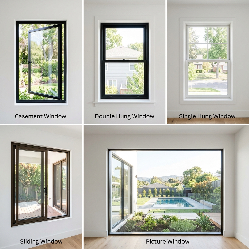 Side-hinged windows that open outward for maximum ventilation and modern functionality.